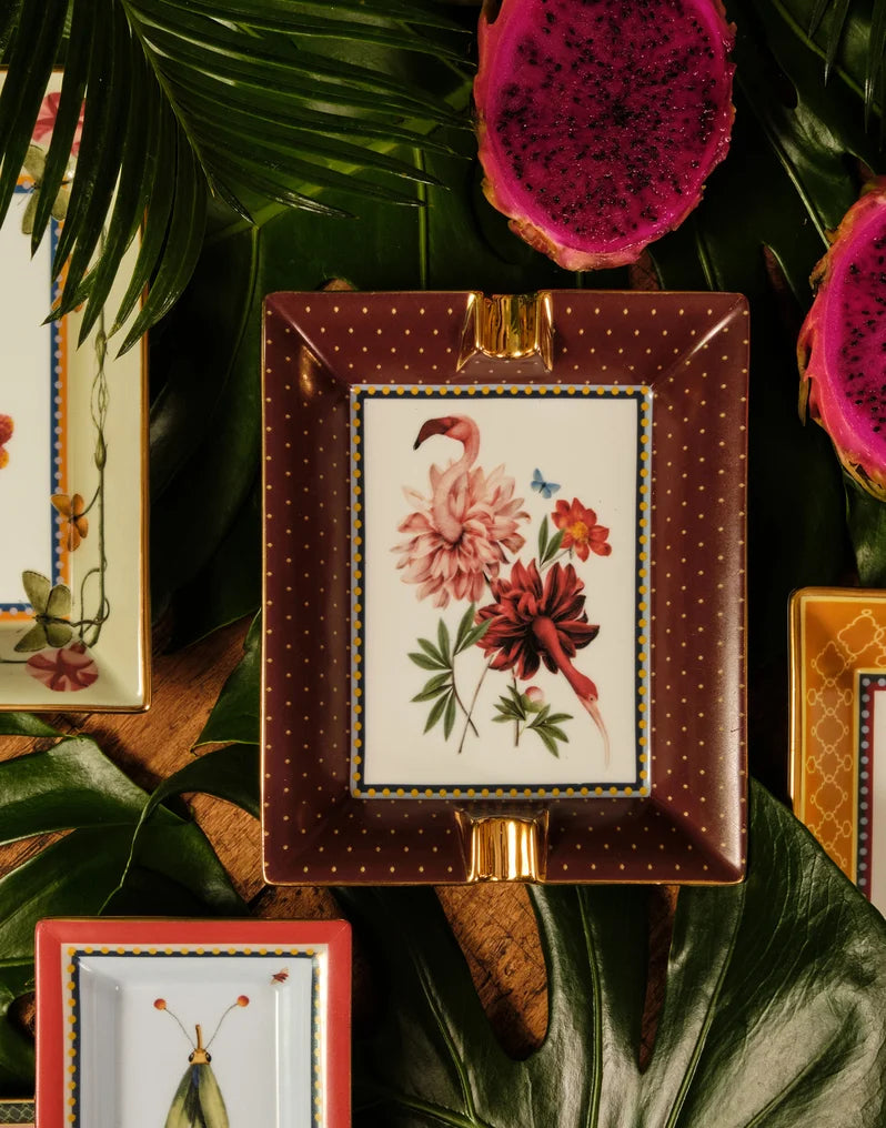 Ashtray Birdbloom Bordeaux in Porcelain