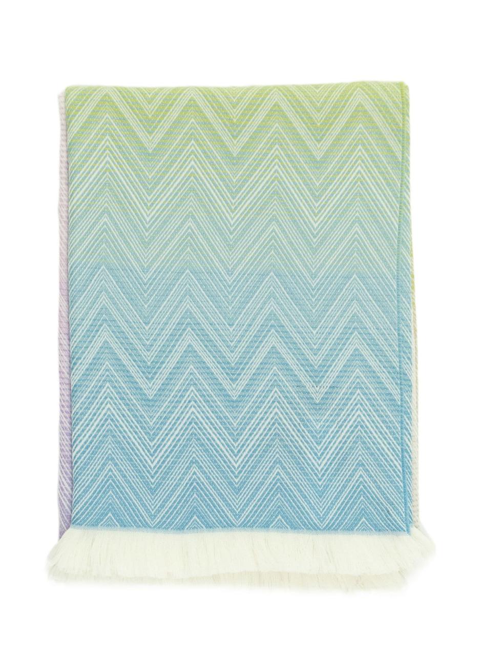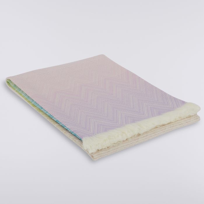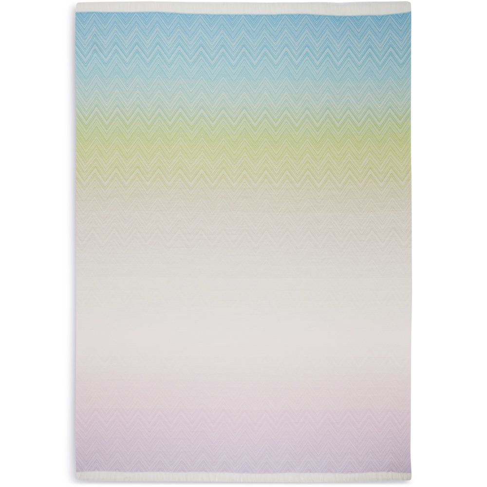 This stylish Missoni Ciro 100 woolen throw features a rainbow ombre in soft pastels with a subtle zigzag weave.