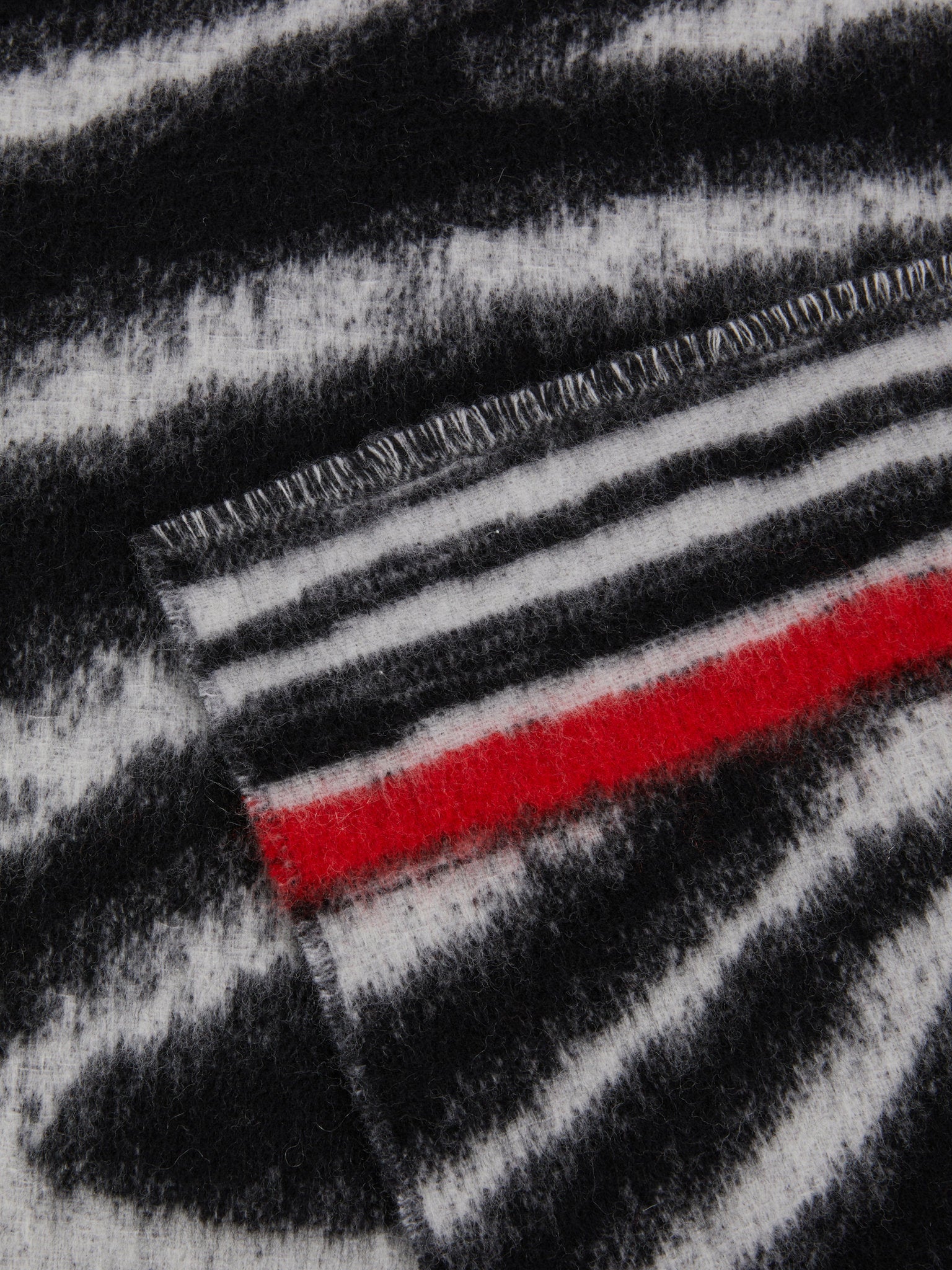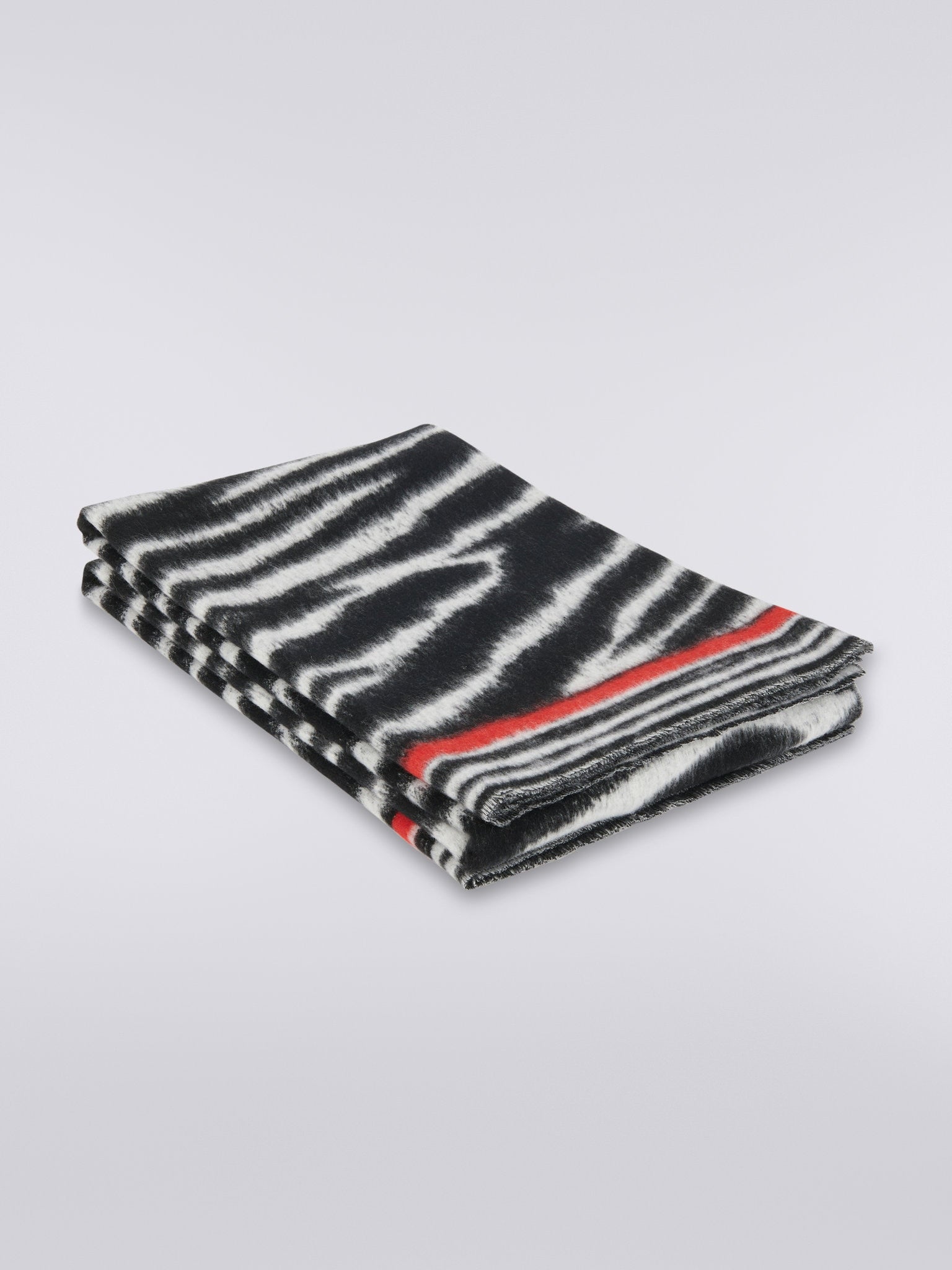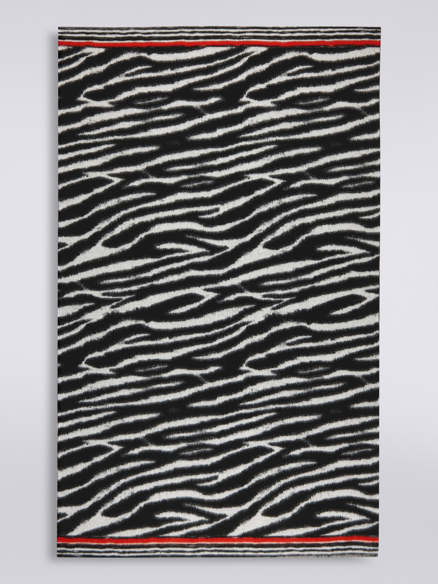 Giving the bedroom a hint of wild and, at the same time, refined exoticism is possible with the 130x190 cm plaid blanket in pure wool. Featuring an animal pattern made with MissoniHome's fine jacquard work, this blanket has contrasting details and fringed edges, adding a distinctive and charming touch to the room.