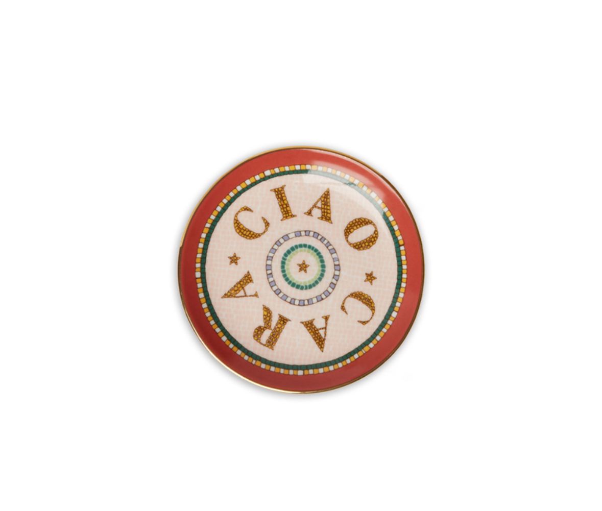 Has something so mini ever looked so maximalist? Our brand new Mini Plates may be small, but bella, are they mighty! Crafted from our peerless Italian porcelain, each plate arrives trimmed in 18K gold and in a unique design inspired by our beloved hometown, Milano. Need a ring tray? She got you. Need a key tray. Stow 'em here, sister. Biscotti for one? Buon appetito! There's no wrong way to Mini Pla(y)te.