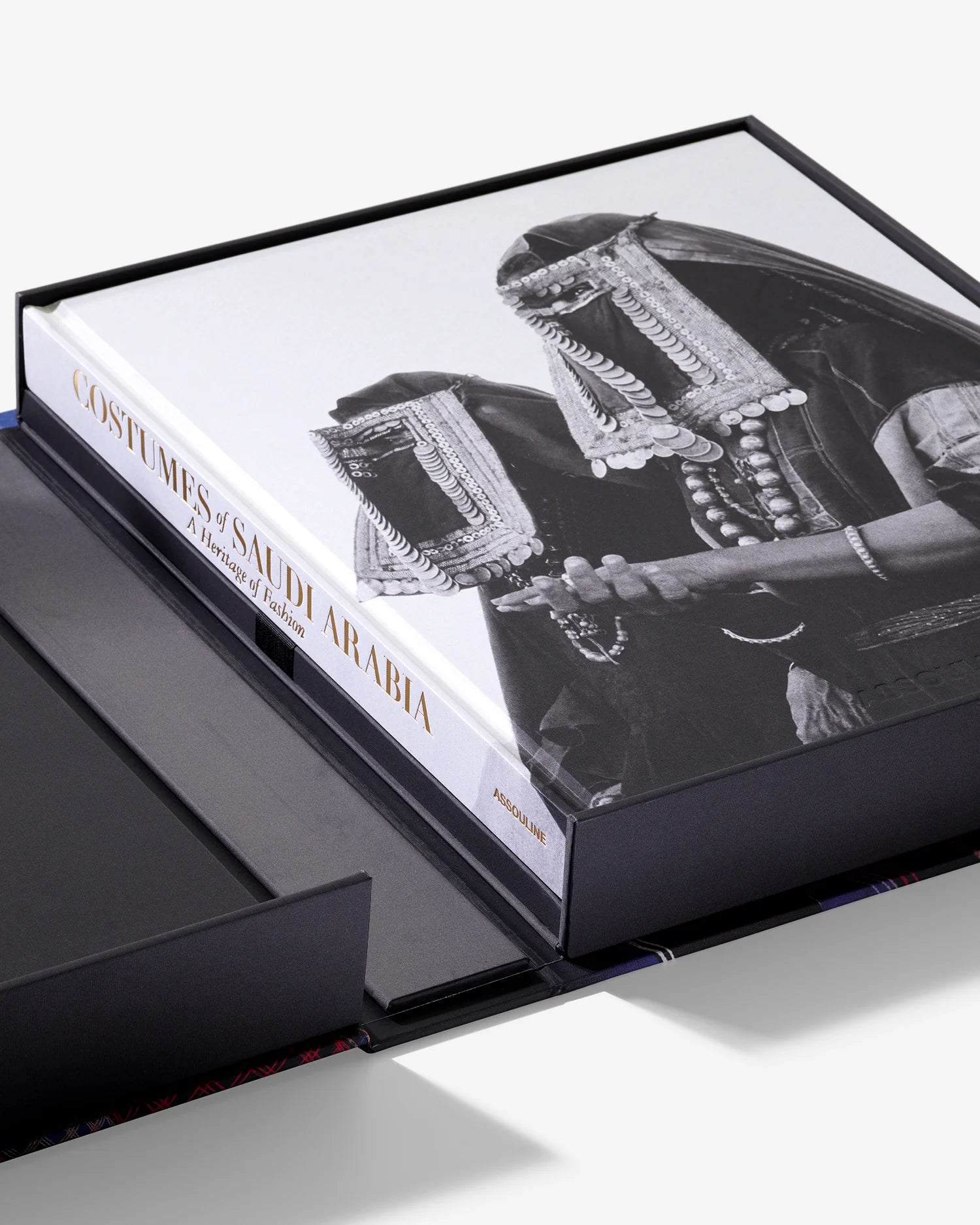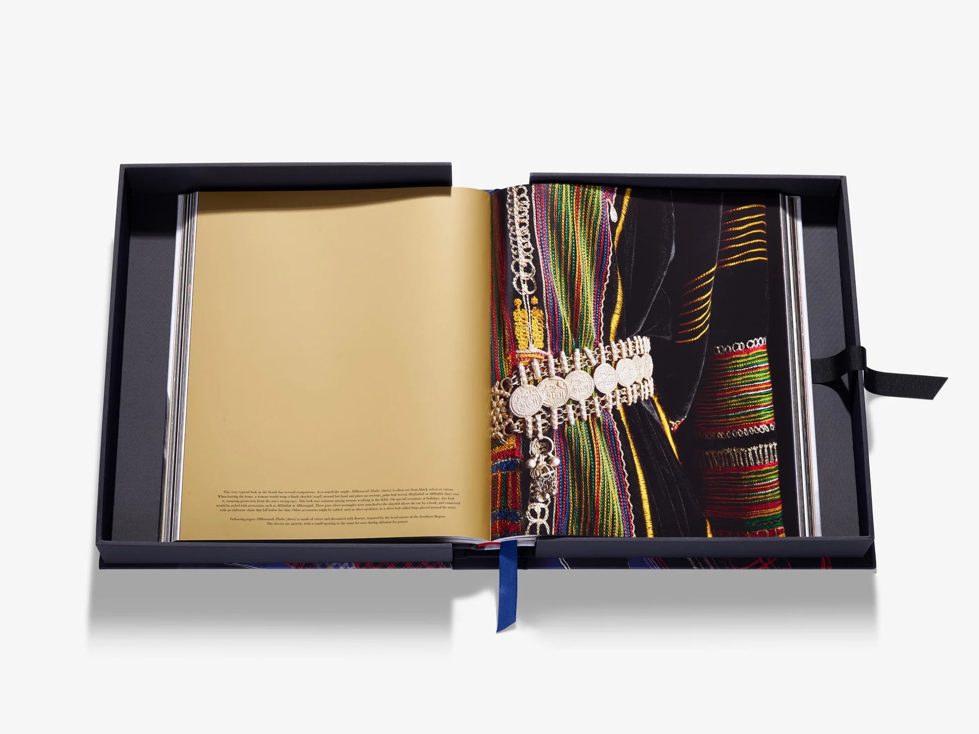 Her Highness Princess Noura bint Faisal Al Saud and Siân Tichař journeyed across the Kingdom to source meaningful ensembles and rare accessories that speak to the country’s diverse fashion history. These pieces were then expertly photographed by Laziz Hamani and compiled in this volume to present a never-before-published collection of Saudi heritage, through the medium of costumes.
