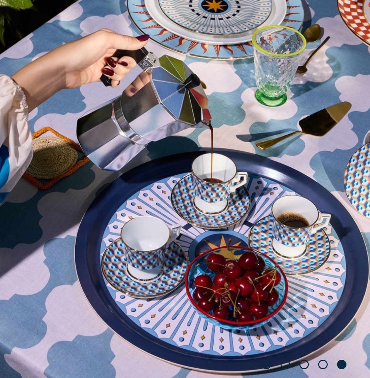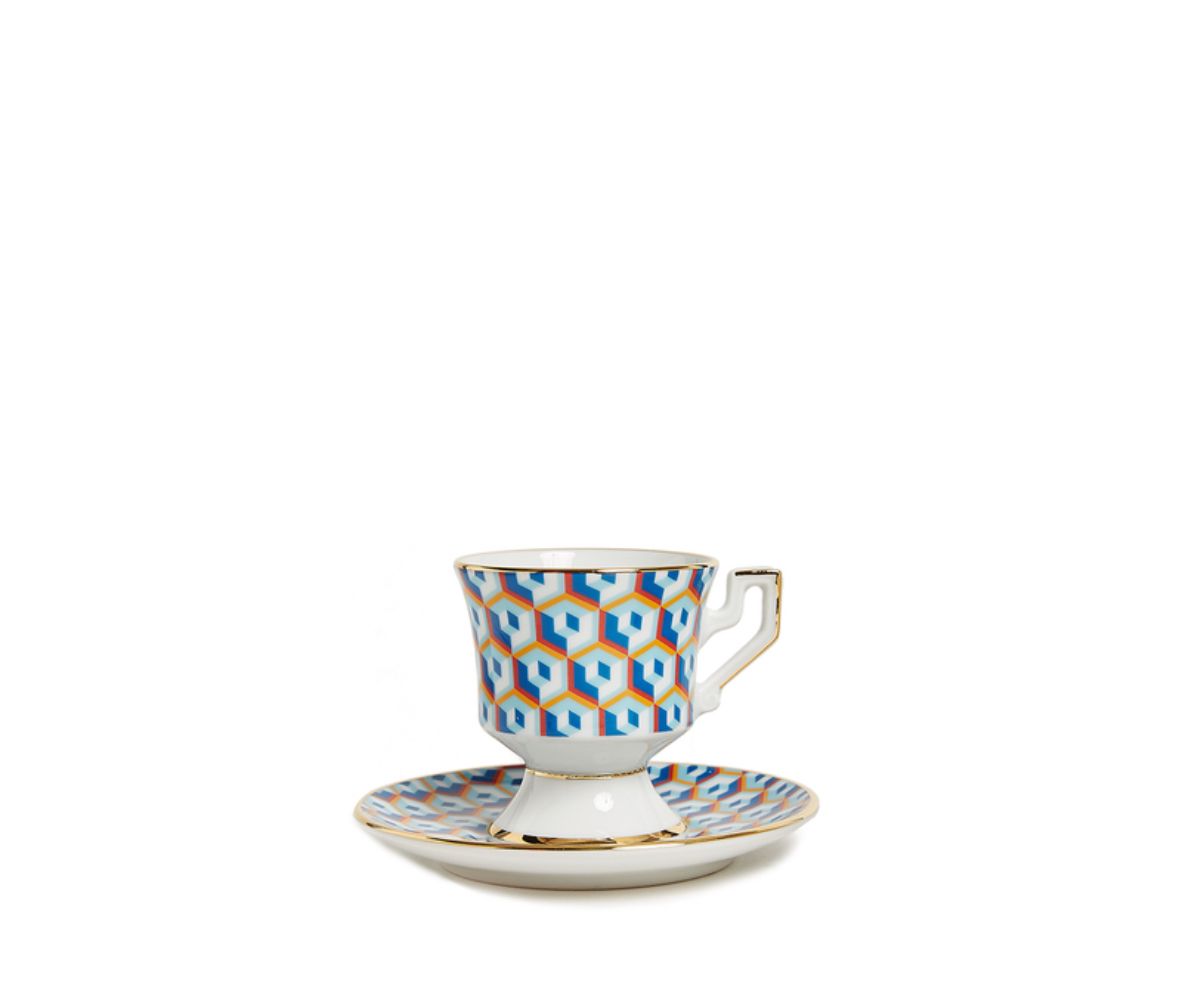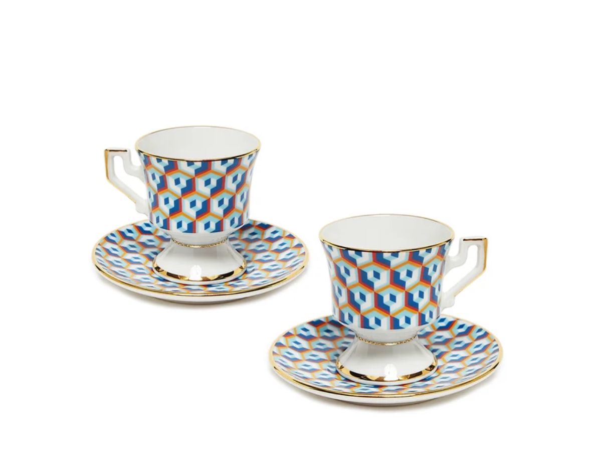 Made in collaboration with Italian porcelain greats, Ancap, this set of two espresso cups and two matching saucers is made from the highest quality porcelain with a hand-painted gold trim. Ripe for sharpening up your morning, noon or nighttime coffee (hey, we’re Italian), they come in our geometric blue Cubi print. Oh, and they go in the dishwasher. You're welcome.
