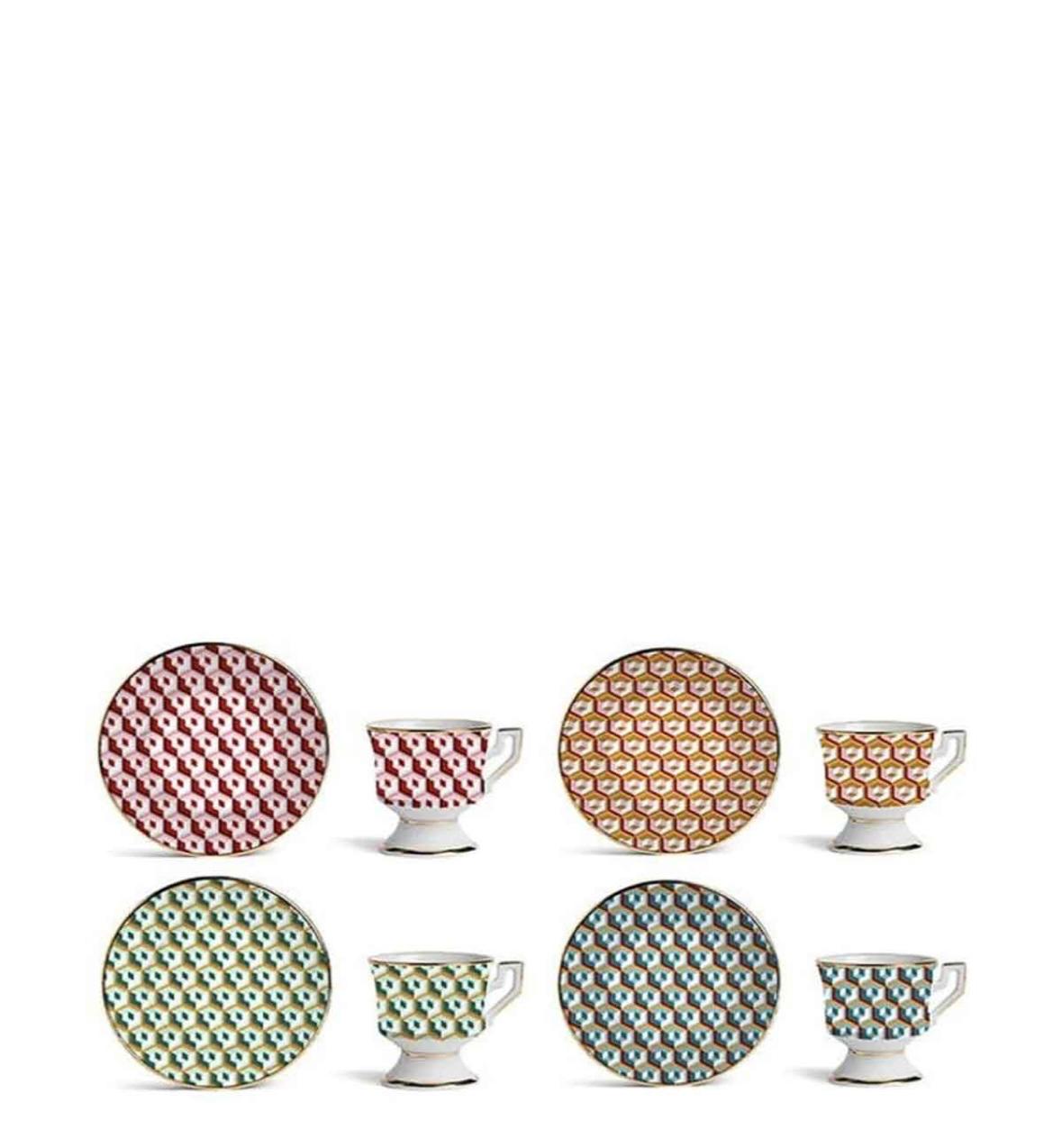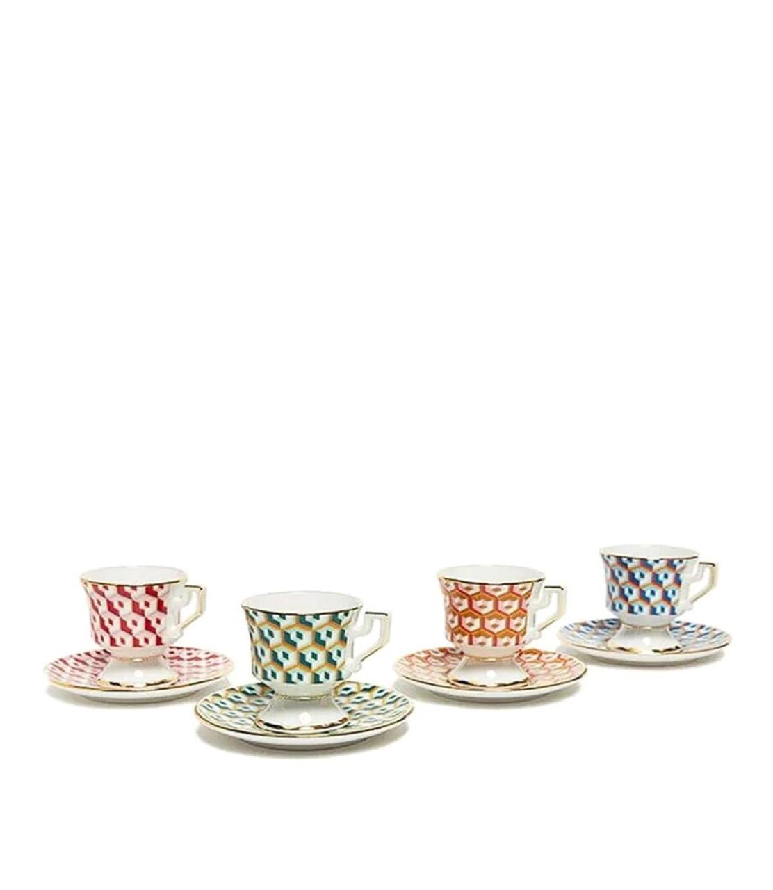Cubi Mix in Porcelain Espresso Cup & Saucer Set of 4