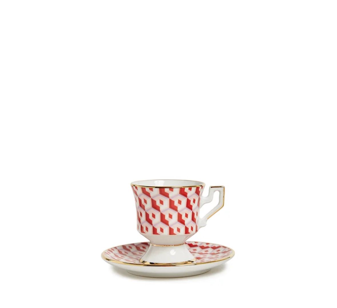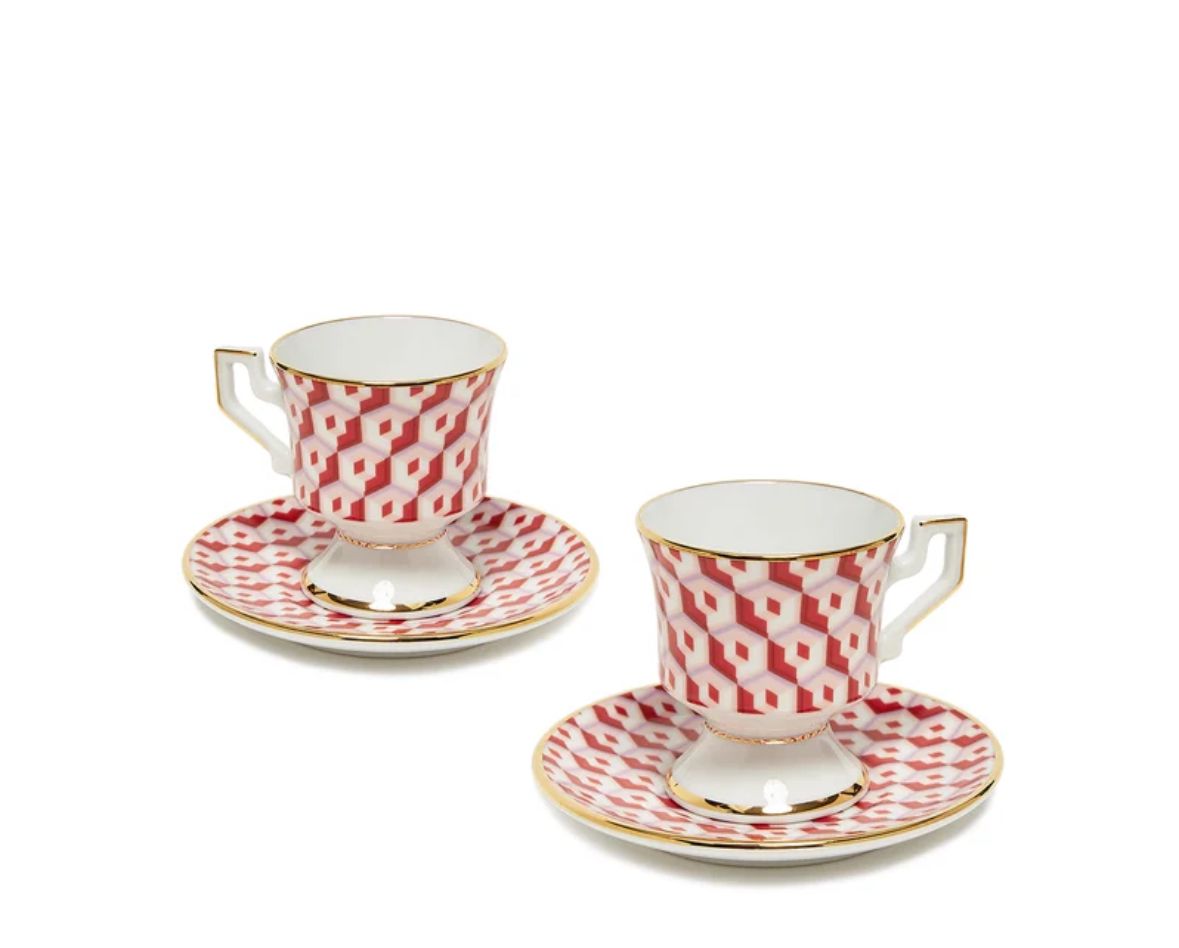 Cubi Rosso in Porcelain Espresso Cup & Saucer Set of 2