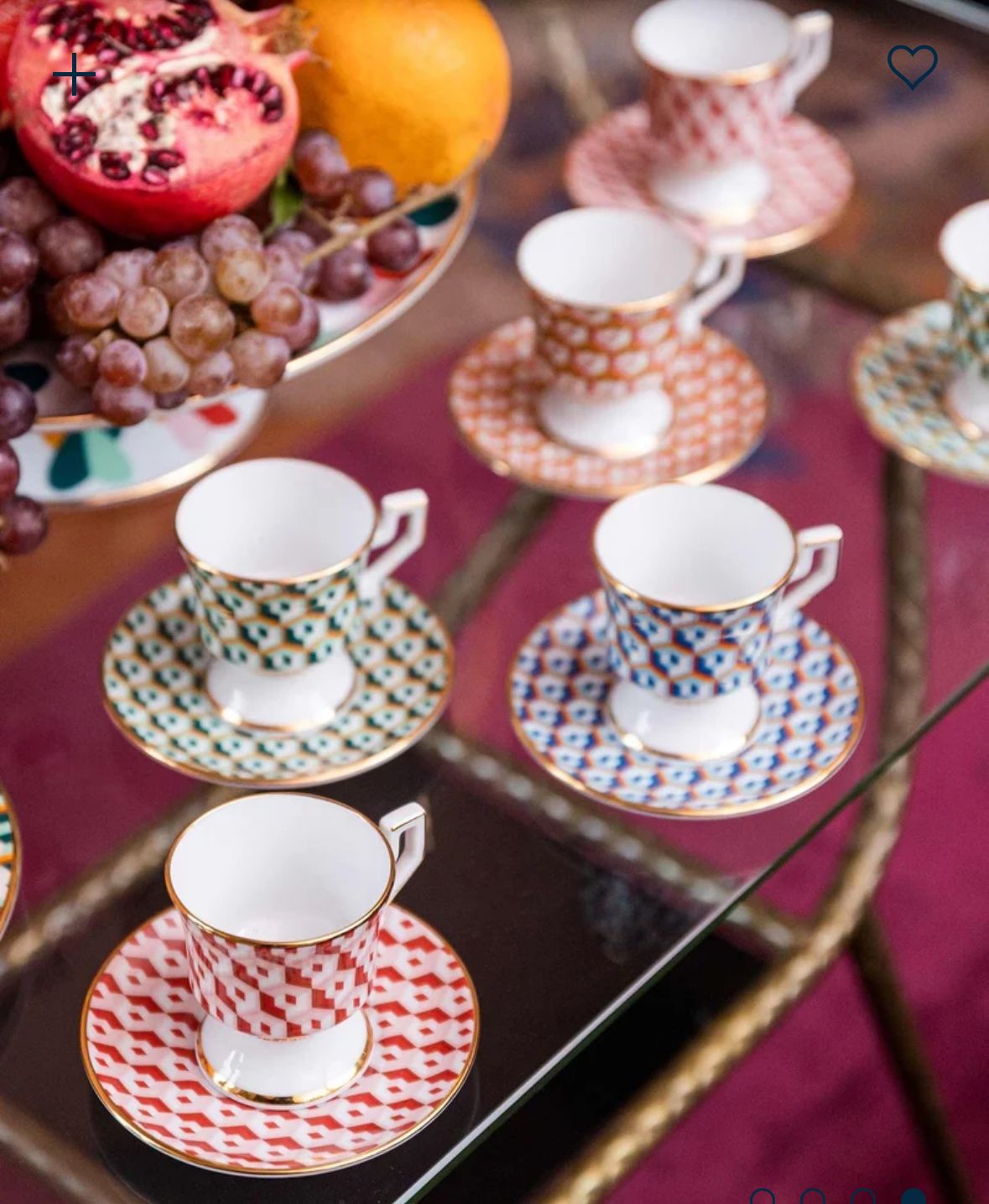Made in collaboration with Italian porcelain greats, Ancap, this set of two espresso cups and two matching saucers is made from the highest quality porcelain with a hand-painted gold trim. Ripe for sharpening up your morning, noon or nighttime coffee (hey, we’re Italian), they come in our geometric red Cubi print. Oh, and they go in the dishwasher. You're welcome.