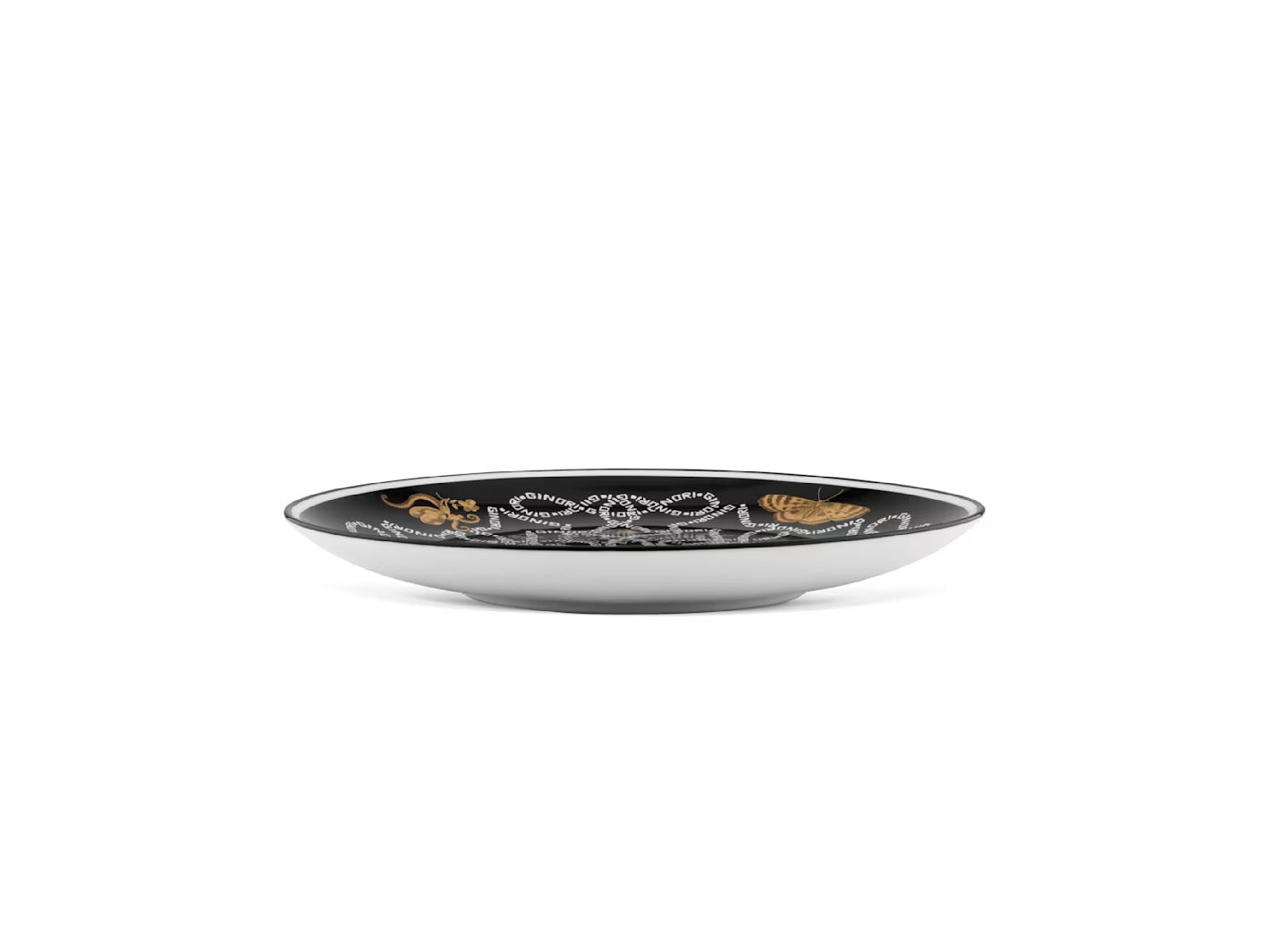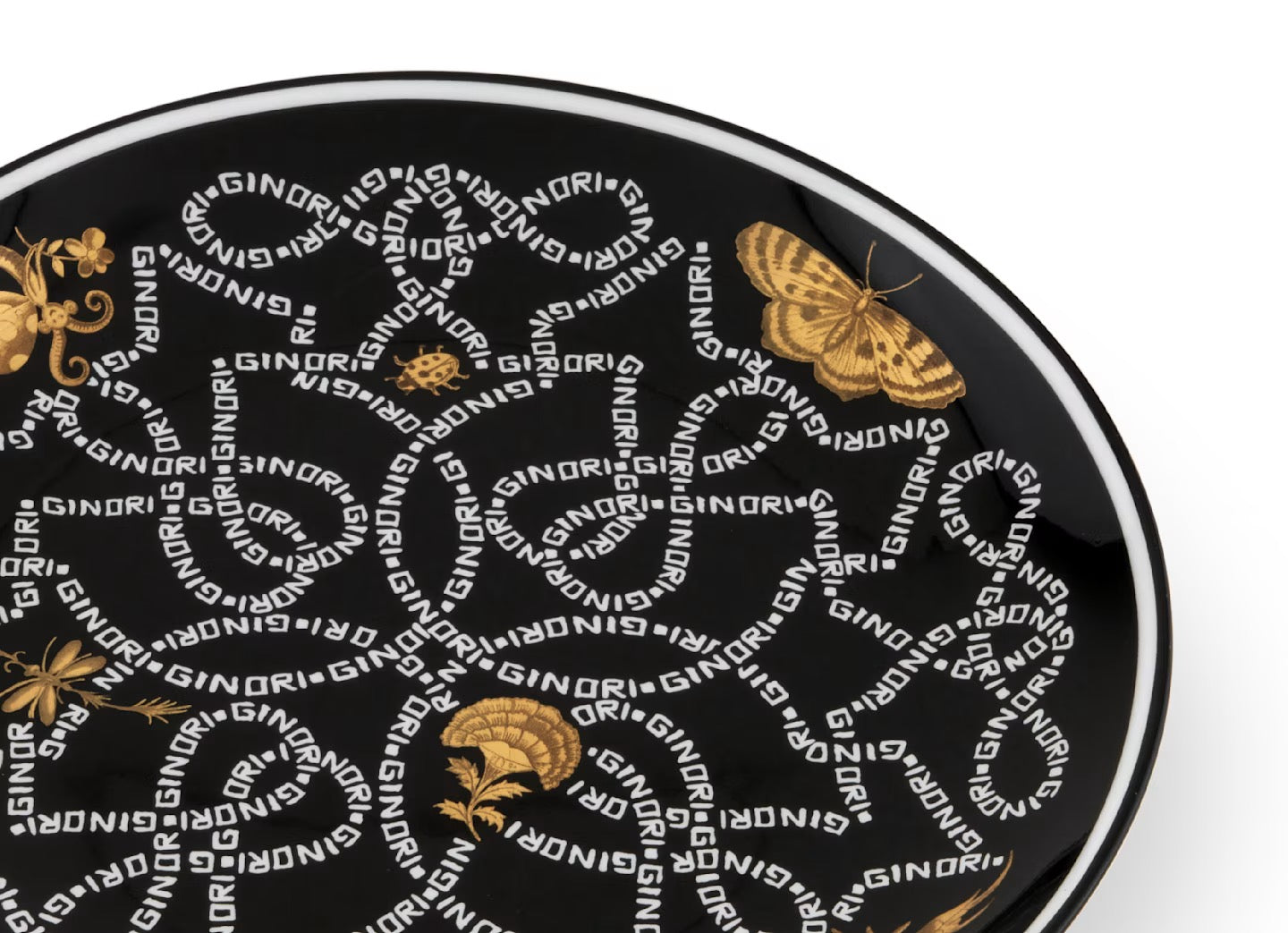 Butterflies, ladybugs and dragonflies painted in gold are ensnared in a beautiful web of Ginori's unique and eye-catching white-on-white lettering. Also available in Acquamarina, Bianco and Rosa, the plates are meant to be arranged in various color combinations for ever-changing mise en place that is refined in the unmistakable style of Ginori 1735. Arcadia was creatively inspired by a collaboration with Fashion Designer Orazio Stasi and tells the tale of a utopian world inhabited by fanciful creatures. Available in an assortment of tableware, coffee and tea services, it typifies the Florentine Maison's savoir faire for excellence as well as its history and artisanal traditions.