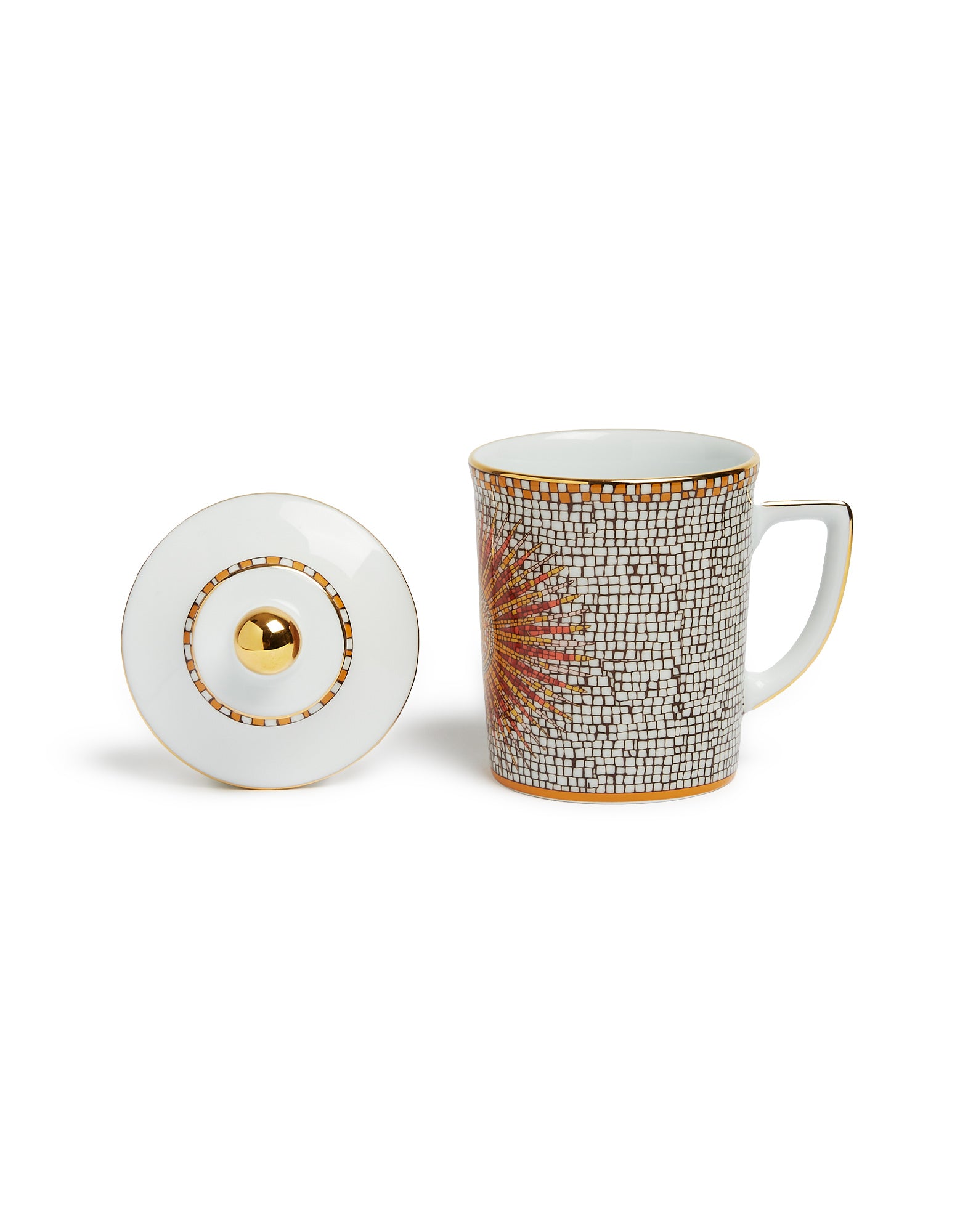 Made in collaboration with Italian porcelain greats, Ancap, this Lidded Mug is made from the highest quality porcelain with a hand-painted gold trim. It has an Italian-style decorative topper to keep your tea piping hot. Featuring a brilliant Sunrays design, inspired by a mosaic found in one of Milan's grandest Palazzos, this is a major mood-boosting addition to your morning tea ritual. A gifting lifesaver, bring it along as your next hostess present and you'll be first on the guest list for years to come. Oh, and it can go in the dishwasher. You're welcome.