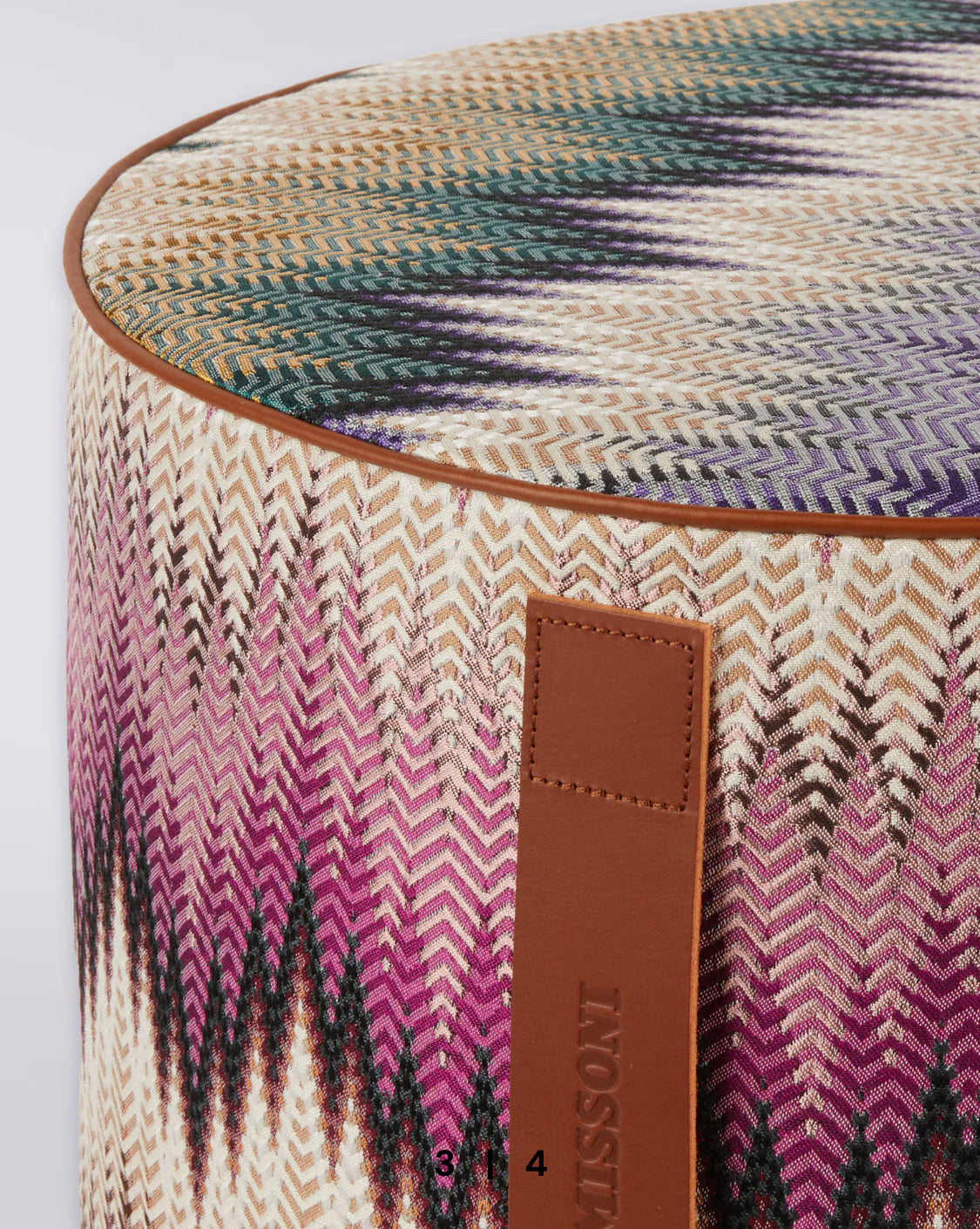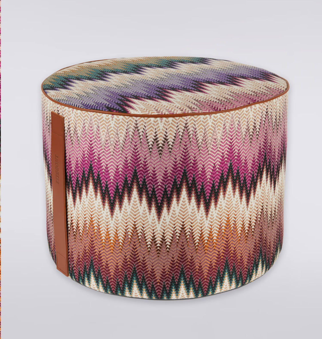 A play of intertwining and overlapping patterns and knitwork characterises the Phrae 40x30 cm cylindrical pouffe. Made of a cotton blend, and enriched with logo-imprinted leather piping and handle, this home furnishing accessory offers a 3D version of the chevron pattern.