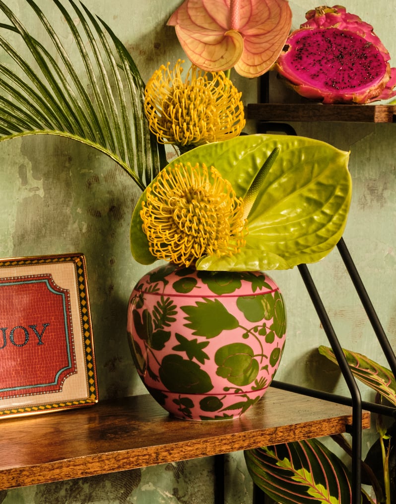 Historic Verona-based porcelain maker Ancap were the masters behind this exquisitely printed porcelain vase, which features 18K gold trim, contrast decorative lining and supersaturated colors. This beloved Wildbird print is a best-seller for a reason - we recommend creating a full, colorful collection with the matching Dessert Plates, Dinner Plates, Platters and linens all hand-crafted by the finest artisans in Italy.