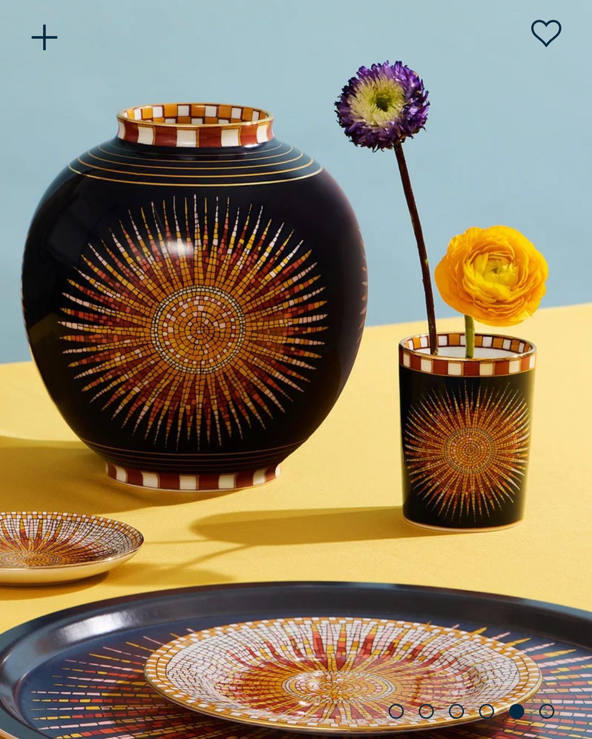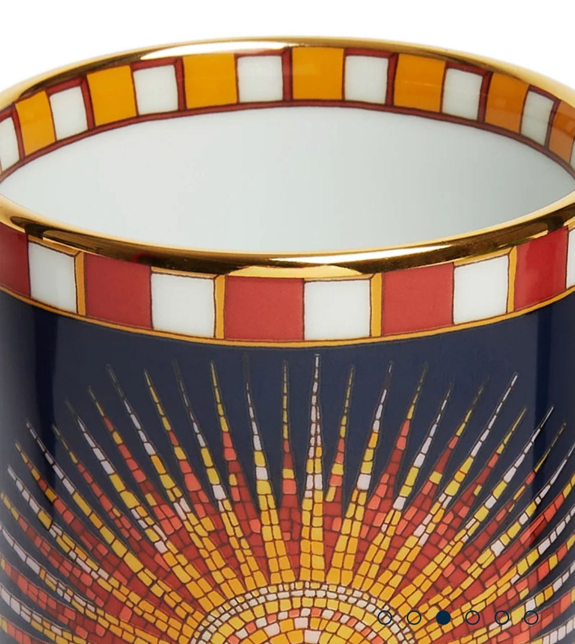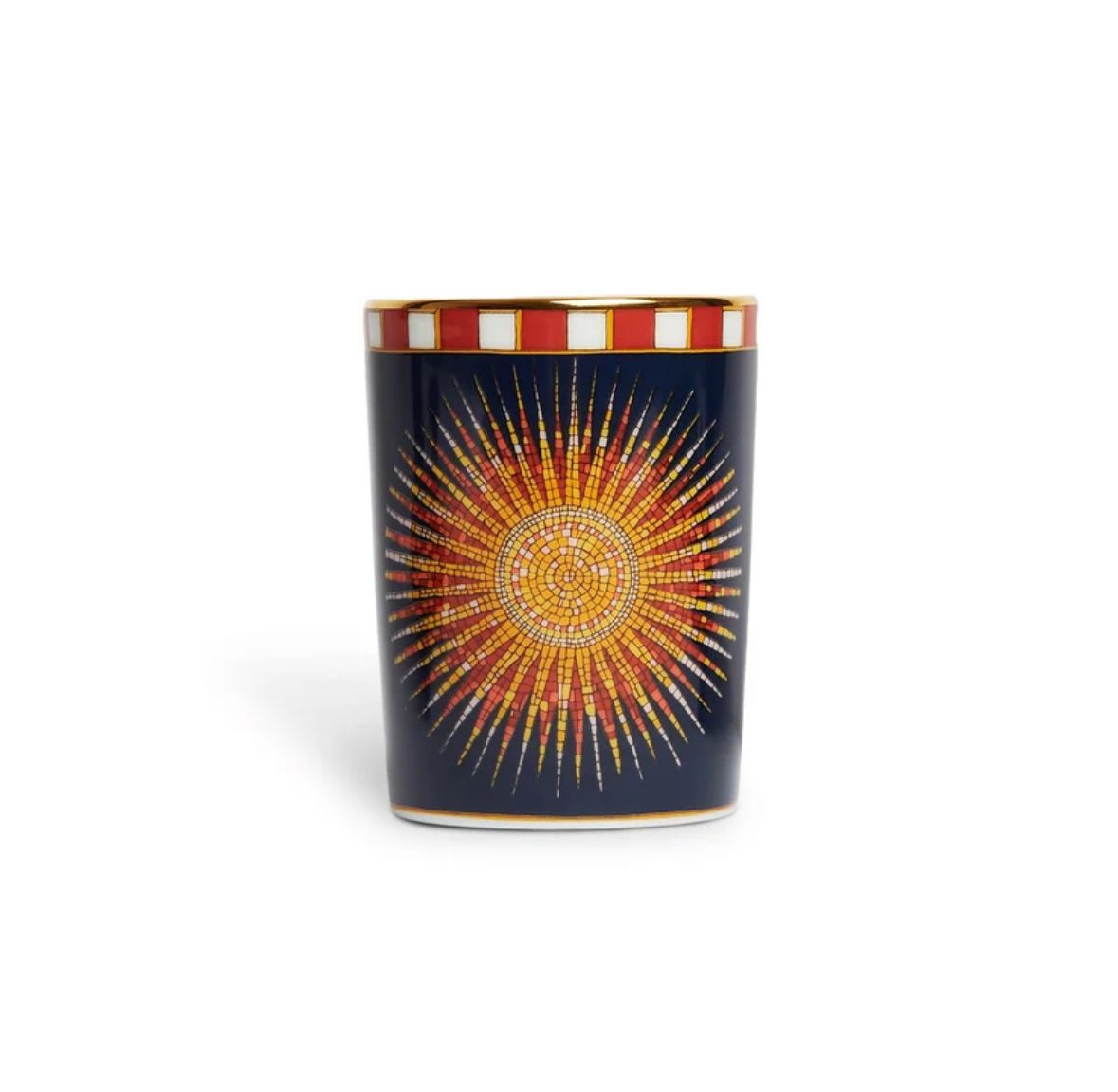 This cup is far too pretty to be kept in the pantry. Crafted from Italy's finest gold-trimmed porcelain, this is a seriously high-vibe vessel, cloaked in our striking Sunrays design inspired by a mosaic found on the floor of Milan's Palazzo Belgoioso. Yes, you could use this for your morning cuppa, but we love it for holding grissini at aperitivo, makeup brushes on our vanity, or buds on our mantlepieces.