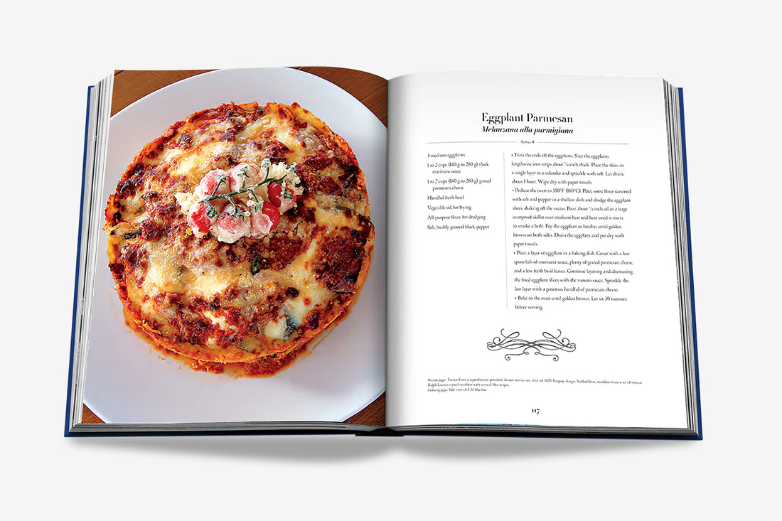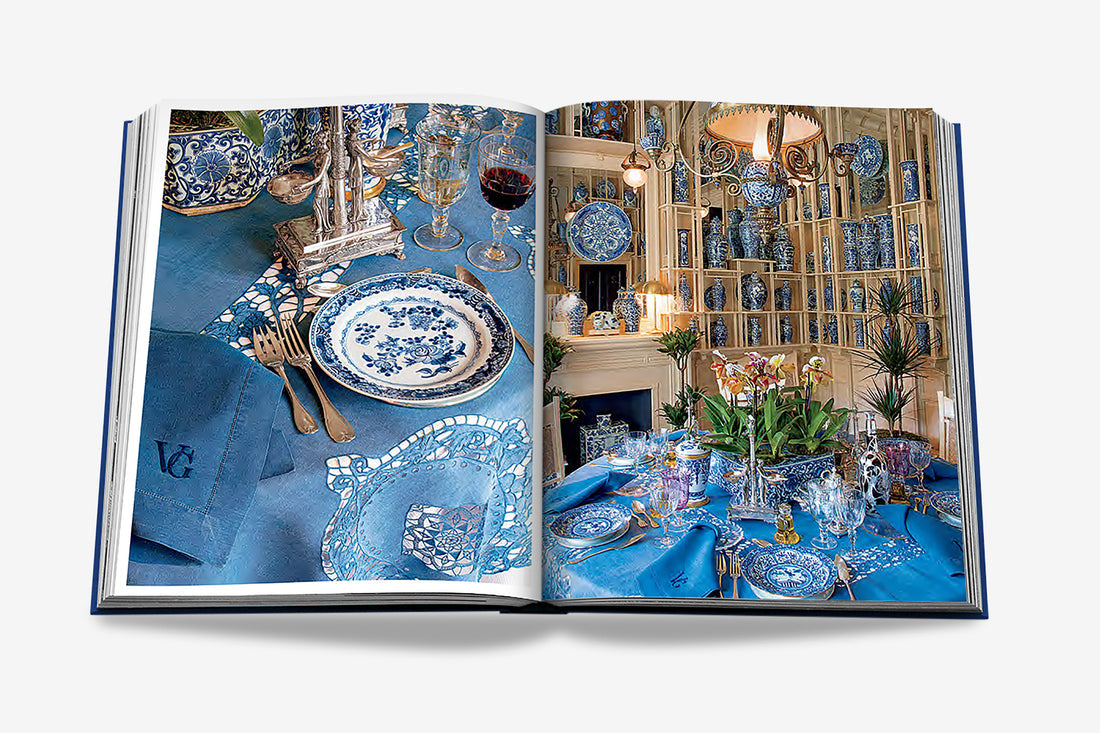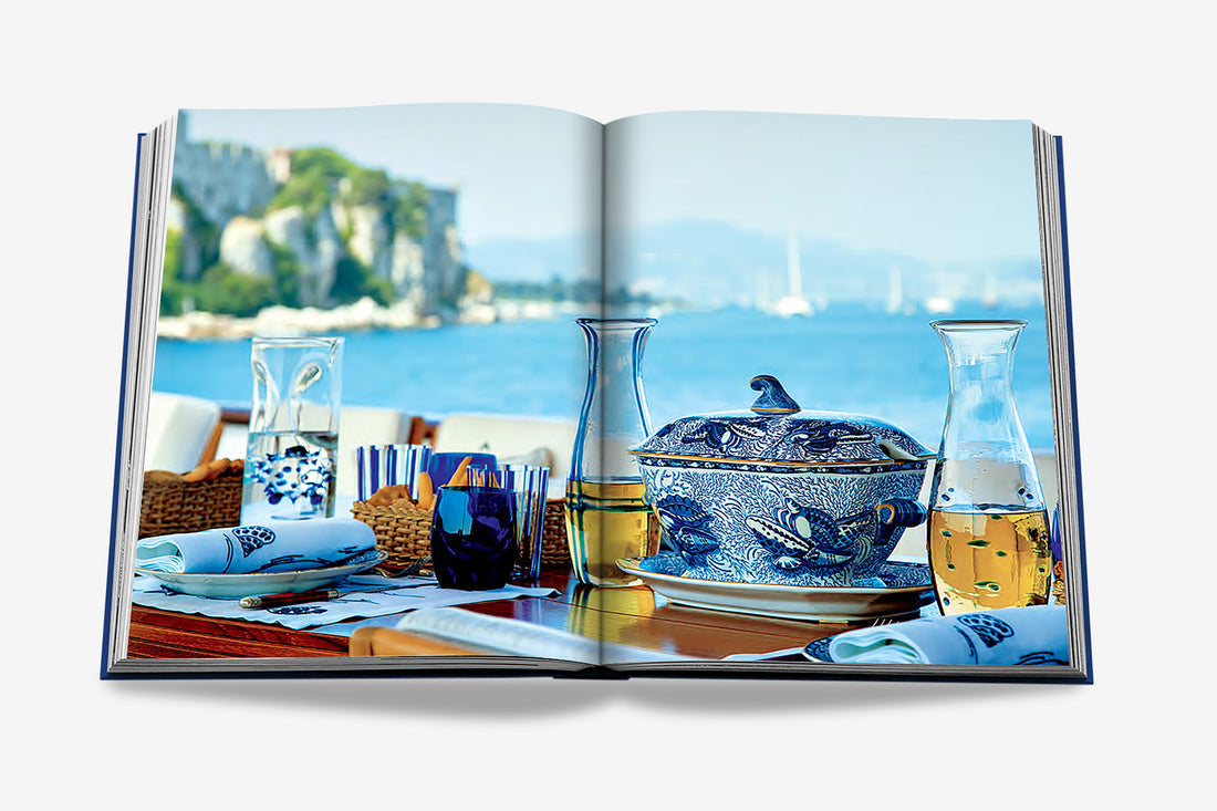Photographed by renowned Italian photographer Oberto Gili, and organized by residence, this book invites the reader to enjoy various table settings and recipes specific to each home. A flan au chevre may be served on Portuguese porcelain at his ski chalet in Gstaad, while a visit to his home in London reveals a “decorating masterpiece”--says Talley in his text--with an orientalist dining room of blue and white china. The New York City pied-a-terre showcases “table decorations…limitless in their exquisiteness” including Russian dinner-service sets and ruby red Irish glass plates. On T.M. Blue One, guests are served Mediterranean-inspired cuisine atop custom, seafaring-themed dinner service sets. “I love sharing the things in my life with my friends,” Valentino says.