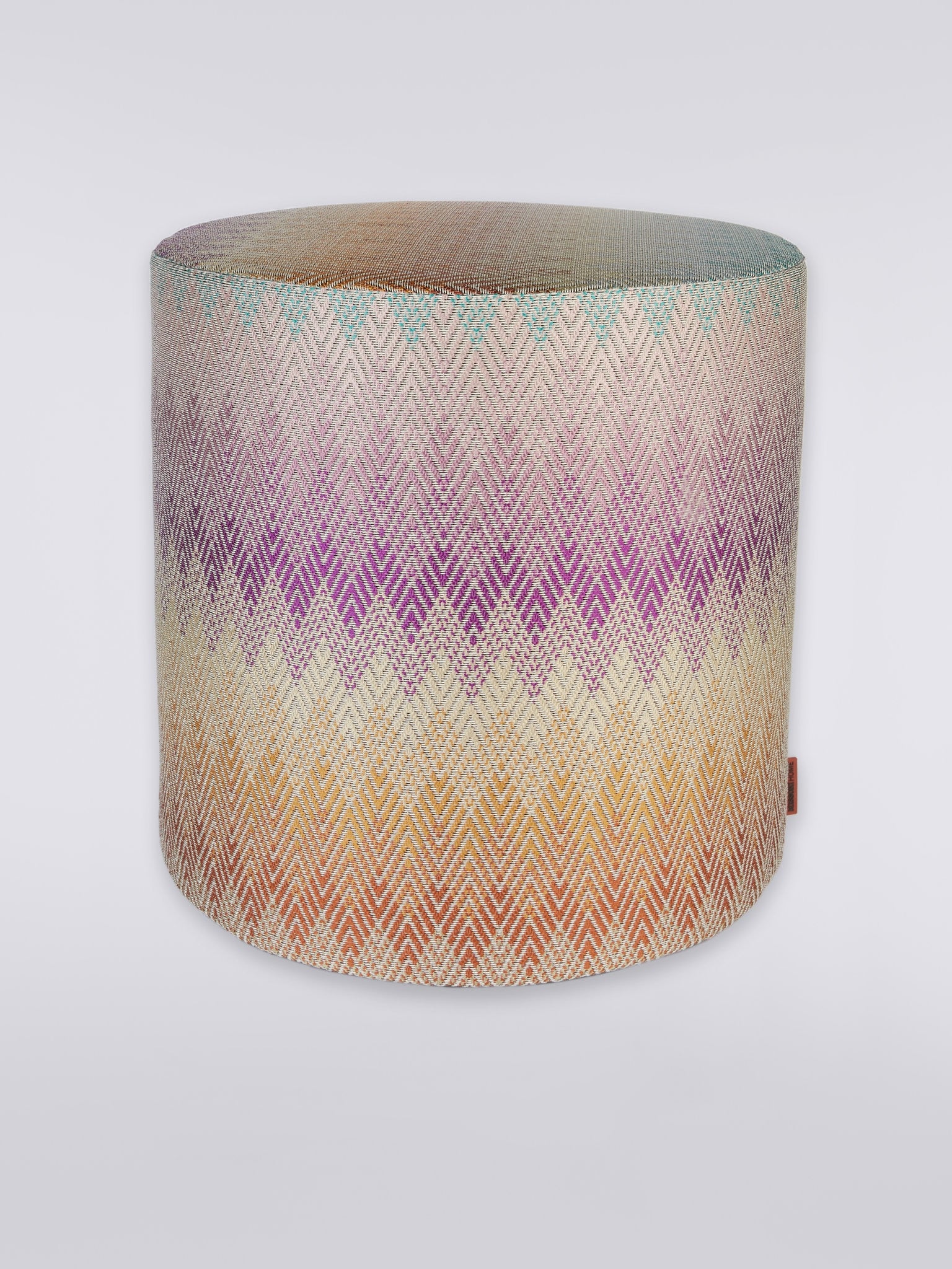 The cylindrical 45x45 cm Yamagata pouffe features overlaid zigzags in pastel shades and neutral colours for a refined melange effect. This versatile home accessory can be used in any room of your home.
